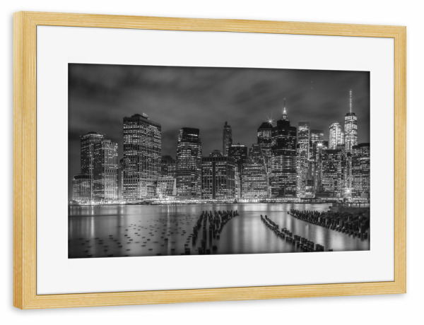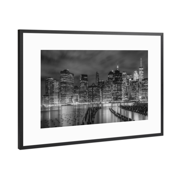 Poster mit Rahmen kiefer "MANHATTAN Monochrome Impression" artboxONE - Städte / New York,Schwarzweiß - New york,Skyline,Nachtaufnahme