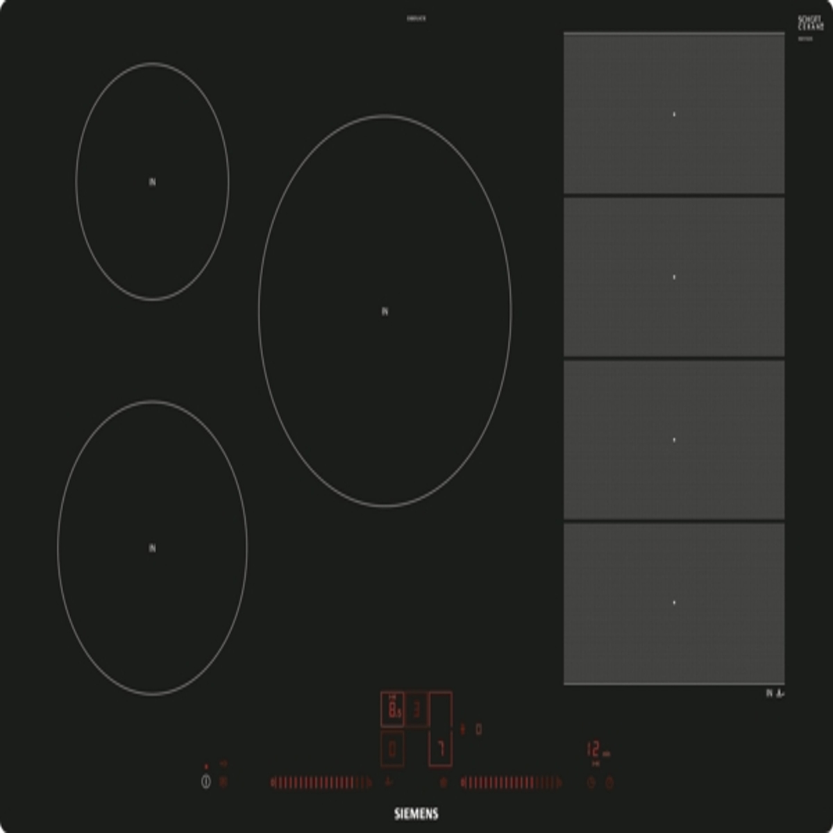 Siemens EH85KHFB1E, Schwarz, Integriert, 80 cm, Zonen-Induktionskochfeld, Glaskeramik, 4 Zone(n)