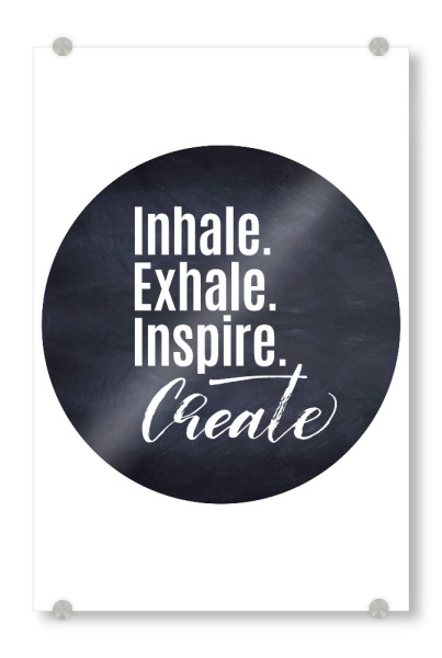 Acrylglasbild "Inhale & Create" artboxONE - Typografie,Abstrakt,Schwarzweiß - Inspiration,Motto,Spruch,Weisheit,Kreativität