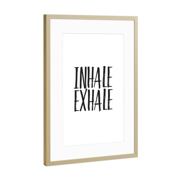 Poster mit Rahmen Gold "Inhale Exhale 2" artboxONE - Typografie,Schwarzweiß