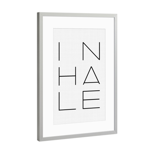 Poster mit Rahmen Silber "Inhale" artboxONE - Typografie,Schwarzweiß,Sport,Sport / Motivation