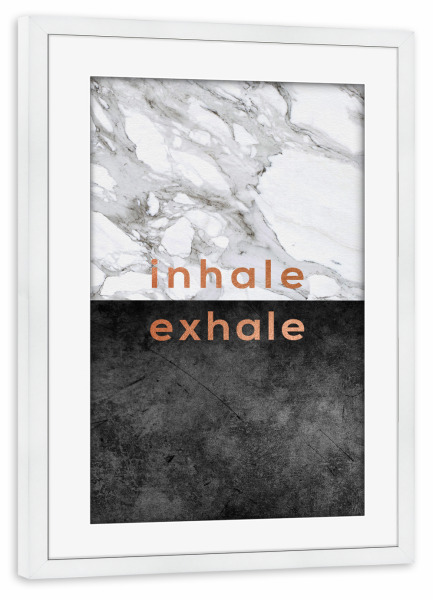 Poster mit Rahmen weiß "Inhale Exhale Copper" artboxONE - Typografie,Schwarzweiß,Marmor