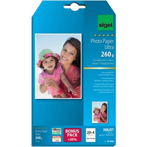 SIGEL IP656 Inkjet Fotopapier Ultra, hochglänzend, 260 g/m², 10x15 cm, 72 Blatt