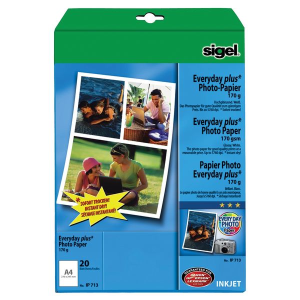 SIGEL IP713 Inkjet Fotopapier Everyday, hochglänzend, 170 g/m², A4, 20 Blatt
