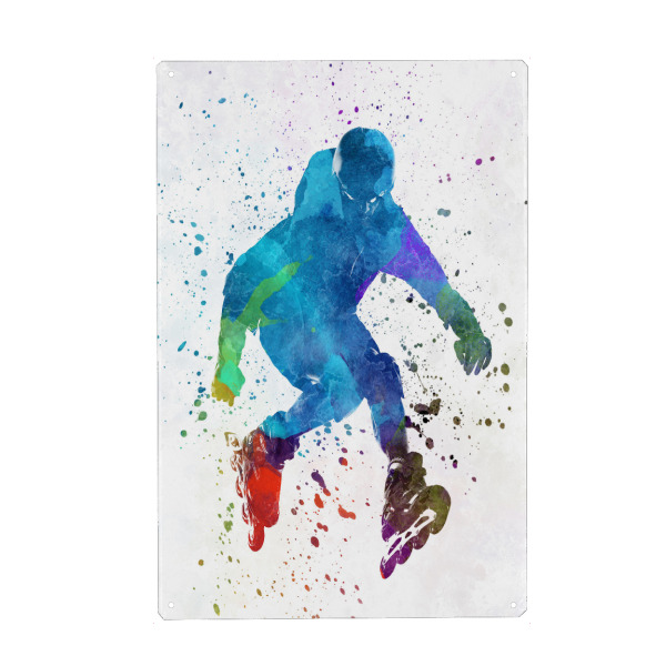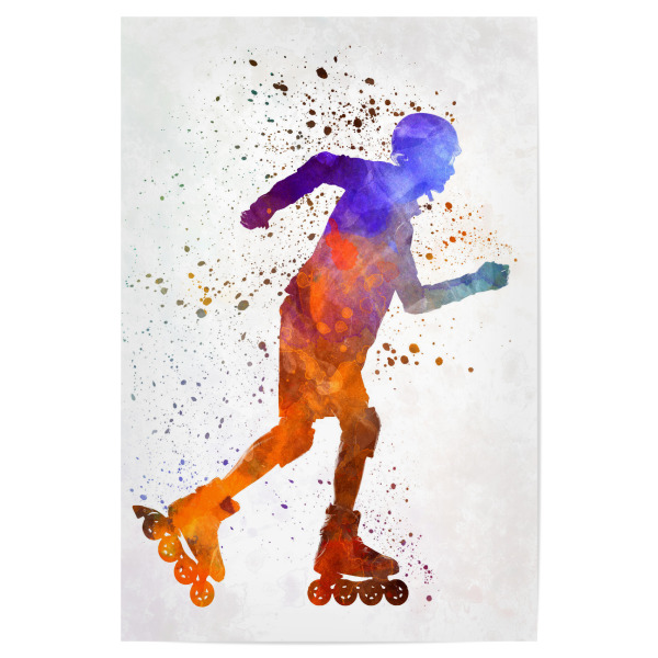 Holzbild "Man roller skater inline" artboxONE - Sport - Sport,Sports,Color,Illustration,Watercolor,Skating,Skater,Roller skating,Inline skating,Jump