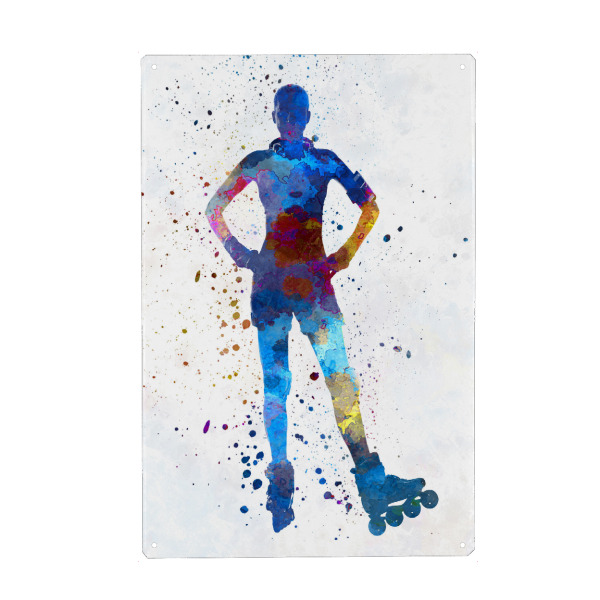 Holzbild "Woman in roller skates-a" artboxONE - Sport - Sport,Sports,Color,Illustration,Watercolor,Skating,Skater,Roller skating,Inline skating,Jump
