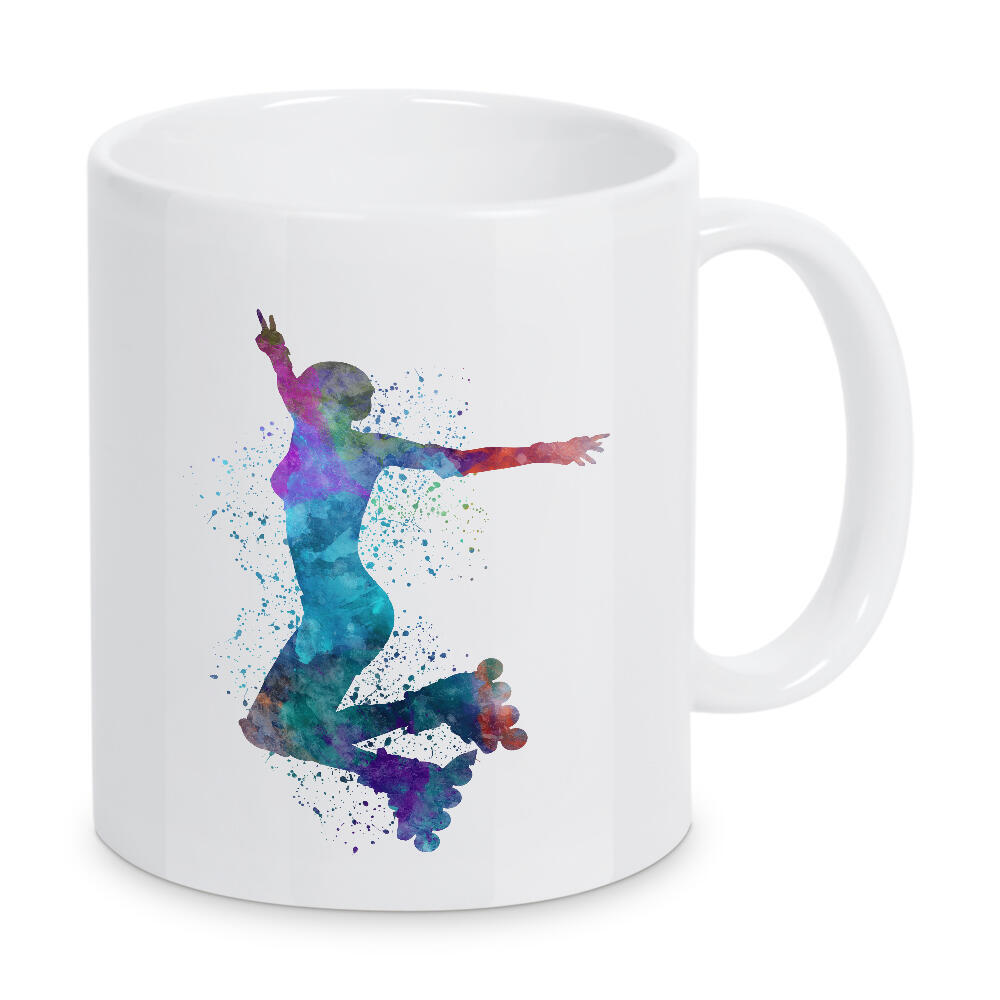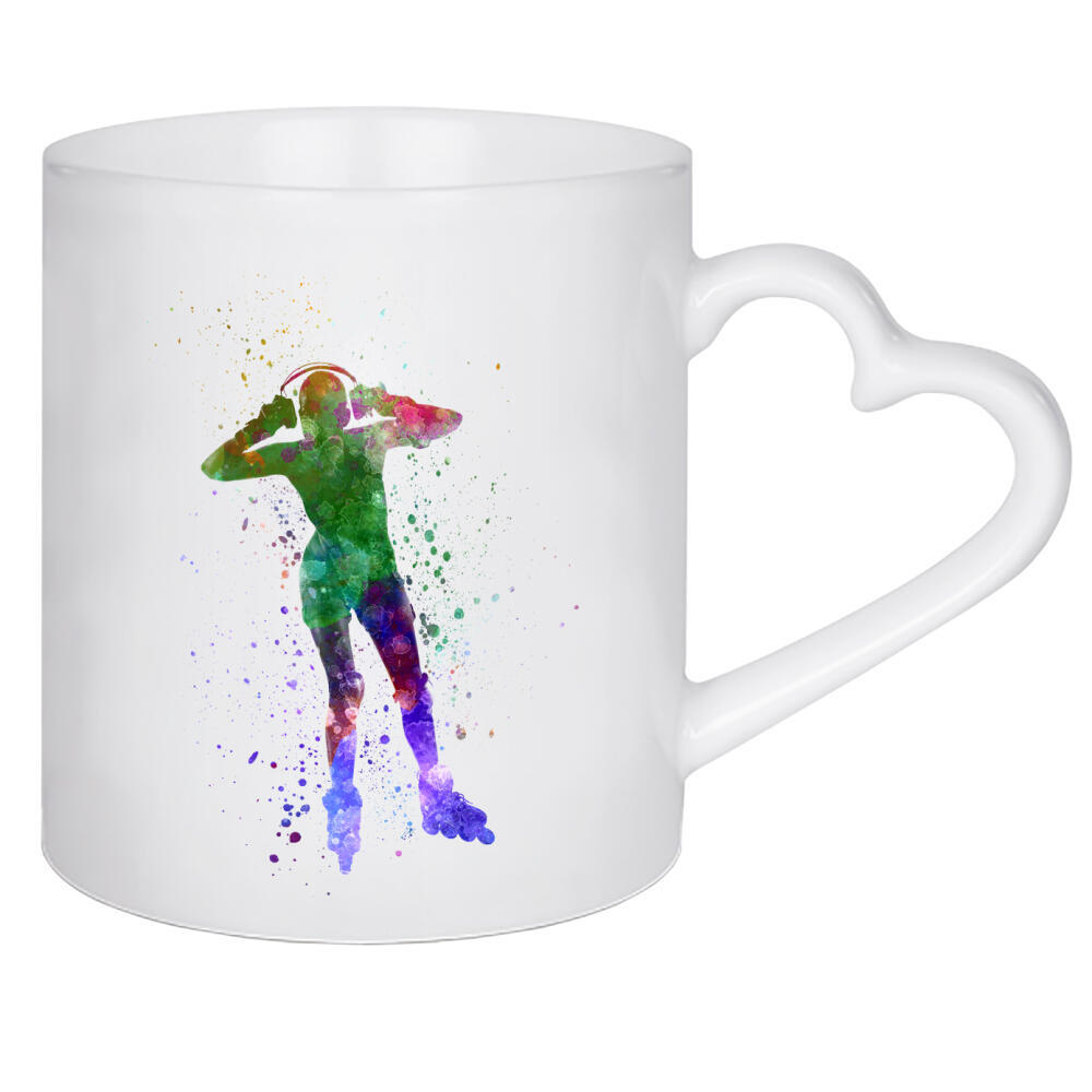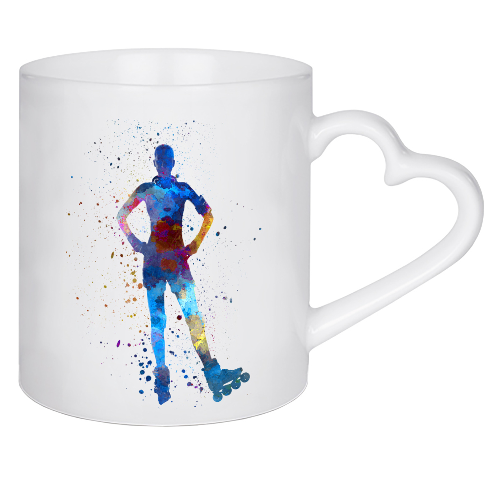 Herztasse "Woman in roller skates-c" artboxONE - Sport - Sport,Sports,Color,Illustration,Watercolor,Skating,Skater,Roller skating,Inline skating,Jump