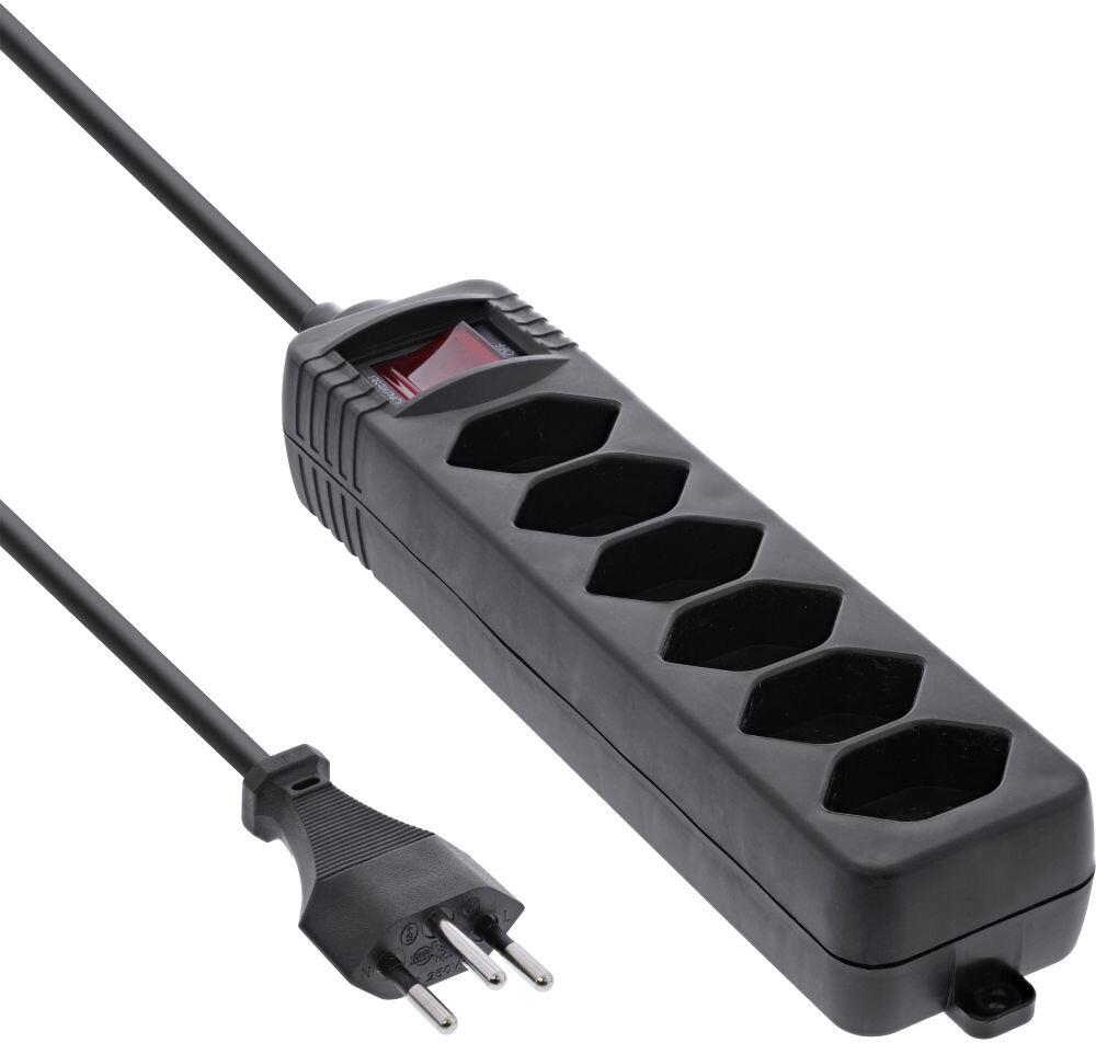 InLine Steckdosenleiste SCHWEIZ, 6-fach, mit Schalter, 1,5m, schwarz (16451Y)