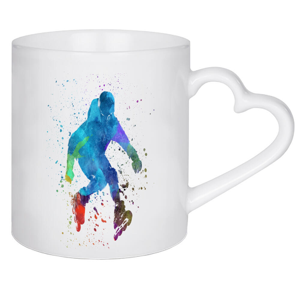 Herztasse "Man roller skater inline" artboxONE - Sport - Sport,Sports,Color,Illustration,Watercolor,Skating,Skater,Roller skating,Inline skating,Jump