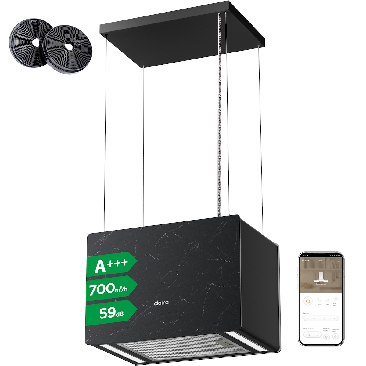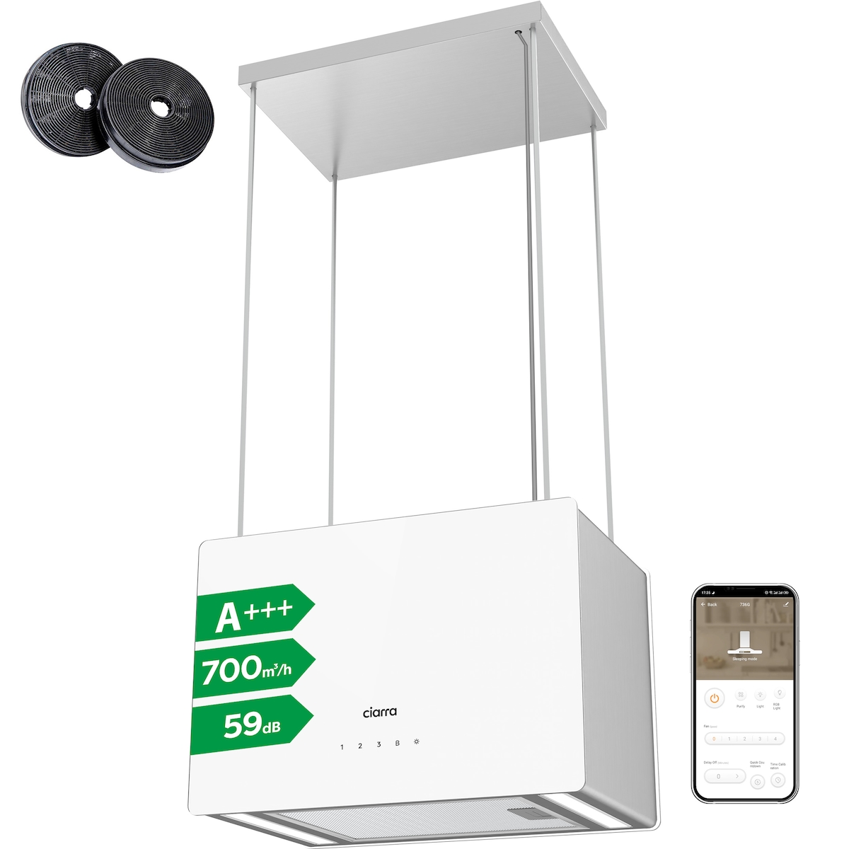 CIARRA A+++ 700 m³/h Inselhaube Freihängend Dunstabzugshaube WiFi App Touch Bedienung VM4850B