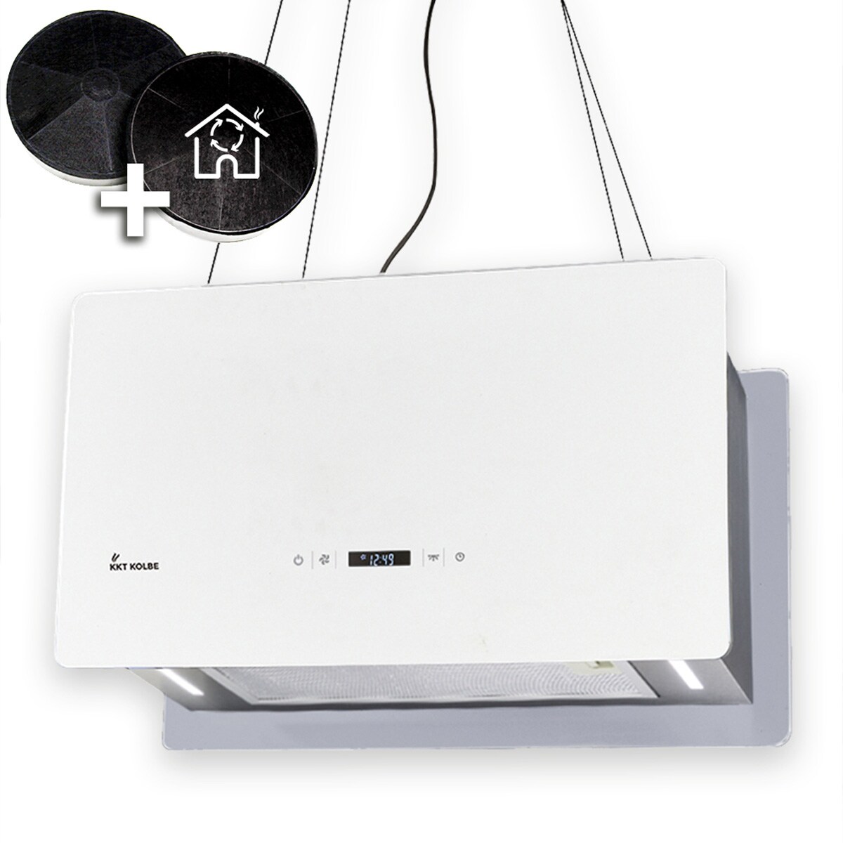 KKT KOLBE Dunstabzugshaube 90 cm | Kopffreie Inselhaube | Edelstahl | weißes Glas | WLAN | Nachlaufautomatik | RGBW-LED-Beleuchtung | SensorTouch ...