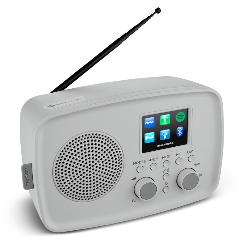 MEDION P85333 Stereo Internetradio grau, 7,1 cm (2,8'') TFT-Farbdisplay, über 25.000 Internet-Radiosender & viele Podcasts empfangen, DAB+/UKW Radio,
