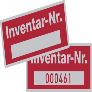 Inventaretiketten "Inventar Nr.", rot, Polyester, 50 x 20 mm, zum Selbstbeschriften