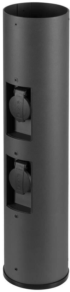 Außensteckdose auf Säule Oslo | Dämmerungssensor | E27-Fassung | IP54 | 2 Steckdosen | 40 cm hoch | Mattschwarz