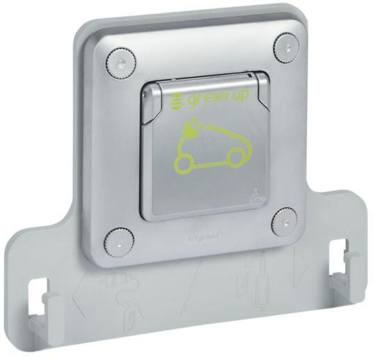 Legrand PLEXO New Einsatz, Green-UP Feuchtraum AP-EV-Steckdose, Aufladen von Elektrofahrzeugen, IP55, Klappdeckel E-Auto-Markierung, anthrazit 069818L