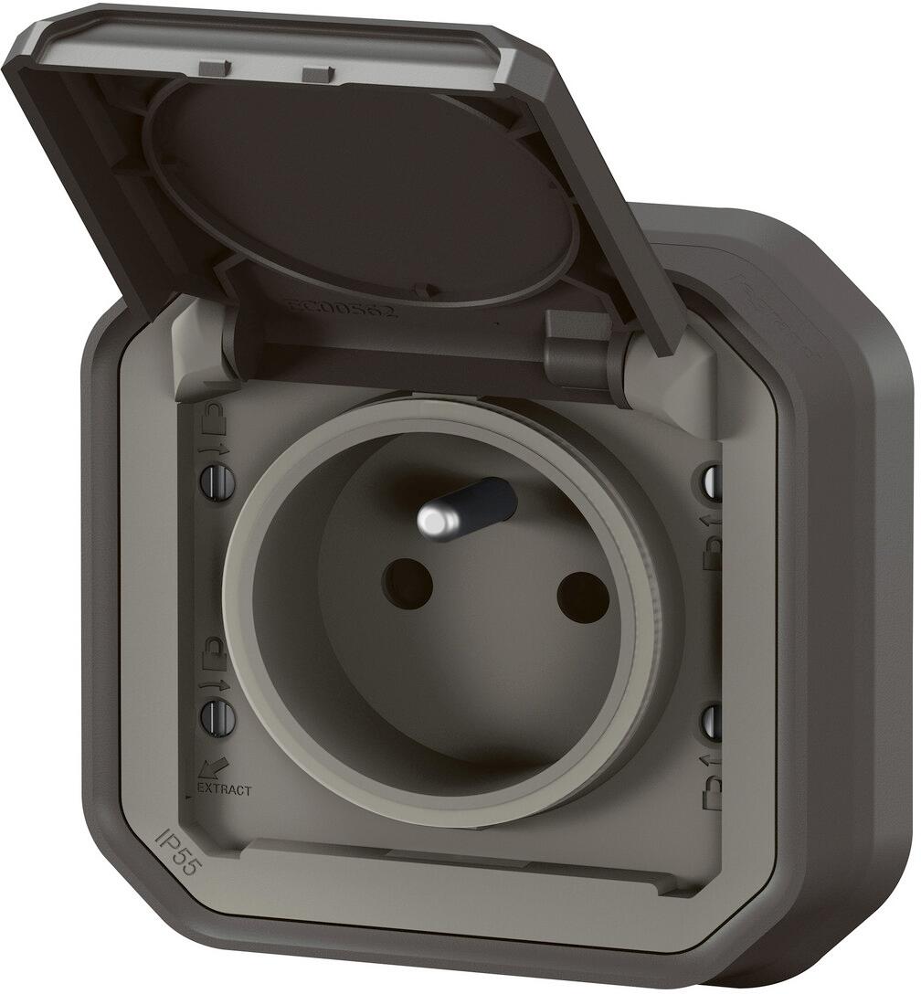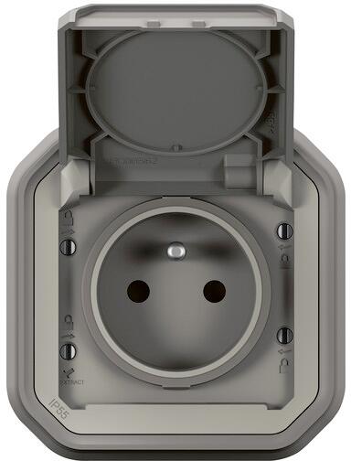 Legrand Plexo New Feuchtraum-Unterputz Steckdose französischer/ belgischer Std. Steckklemmen erhöhter Berührungsschutz, IP55, IK08, Grau (069831L)