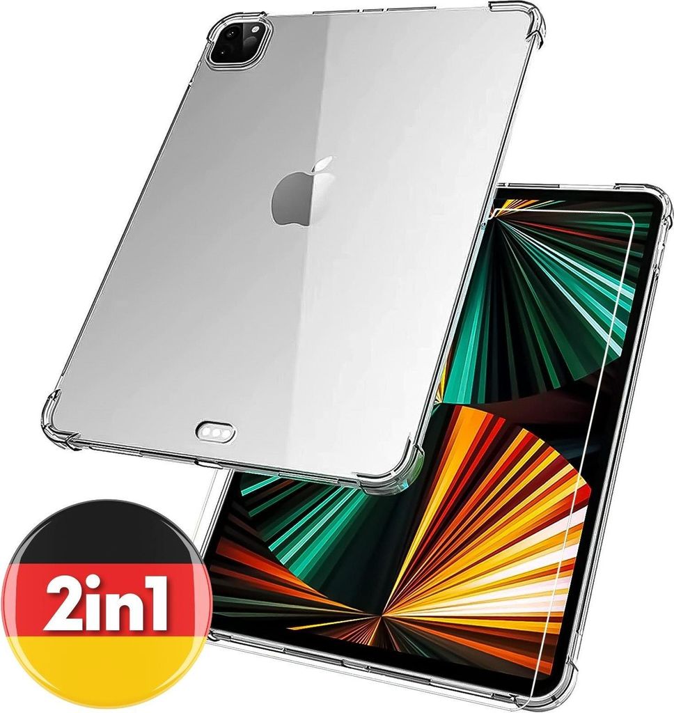 Silikon Schutzhülle für Apple iPad Pro 12.9 (2021) Hülle Slim Case Tasche 9H Glas Schutzfolie Glasfolie Transparent