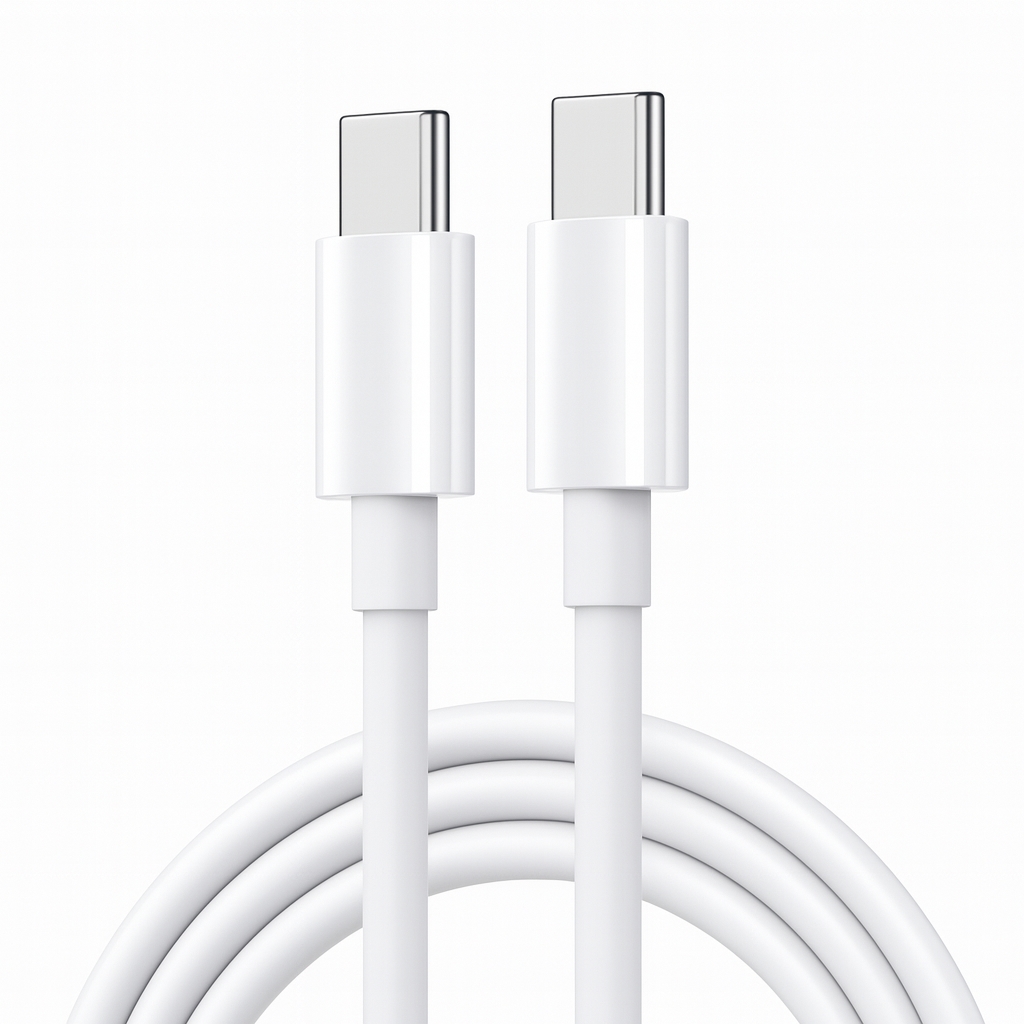 USB-C auf USB-C 60W Schnellladekabel 1 m – Daten- & Ladekabel für iPhone 15, 16, 17, Pro, Max, Samsung, Huawei, Xiaomi & mehr – Schnell, stabil & weiß