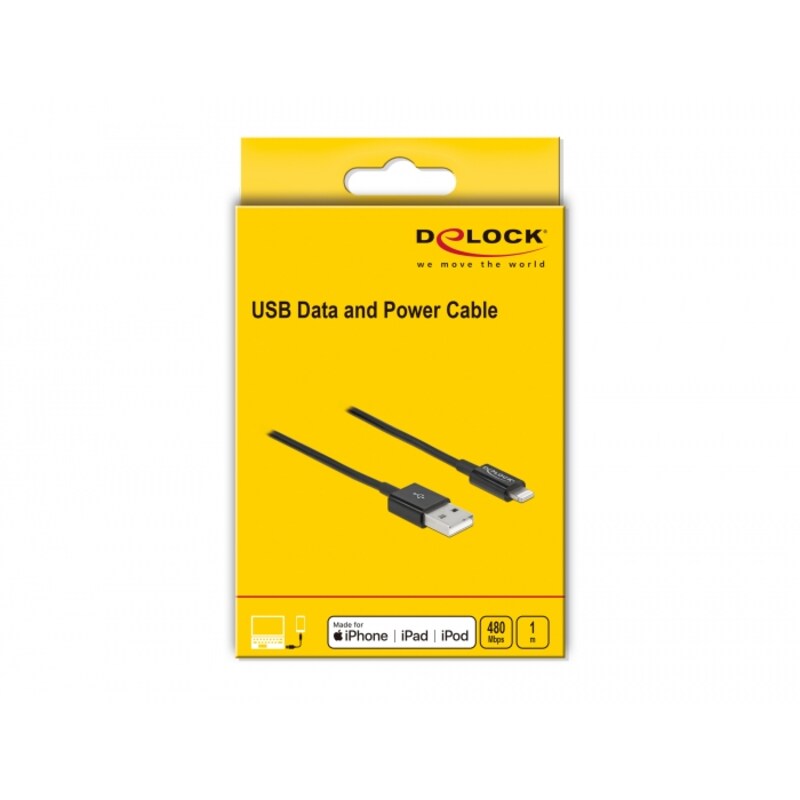 Delock USB Daten- und Ladekabel für iPhone , iPad , iPod schwarz 1 m