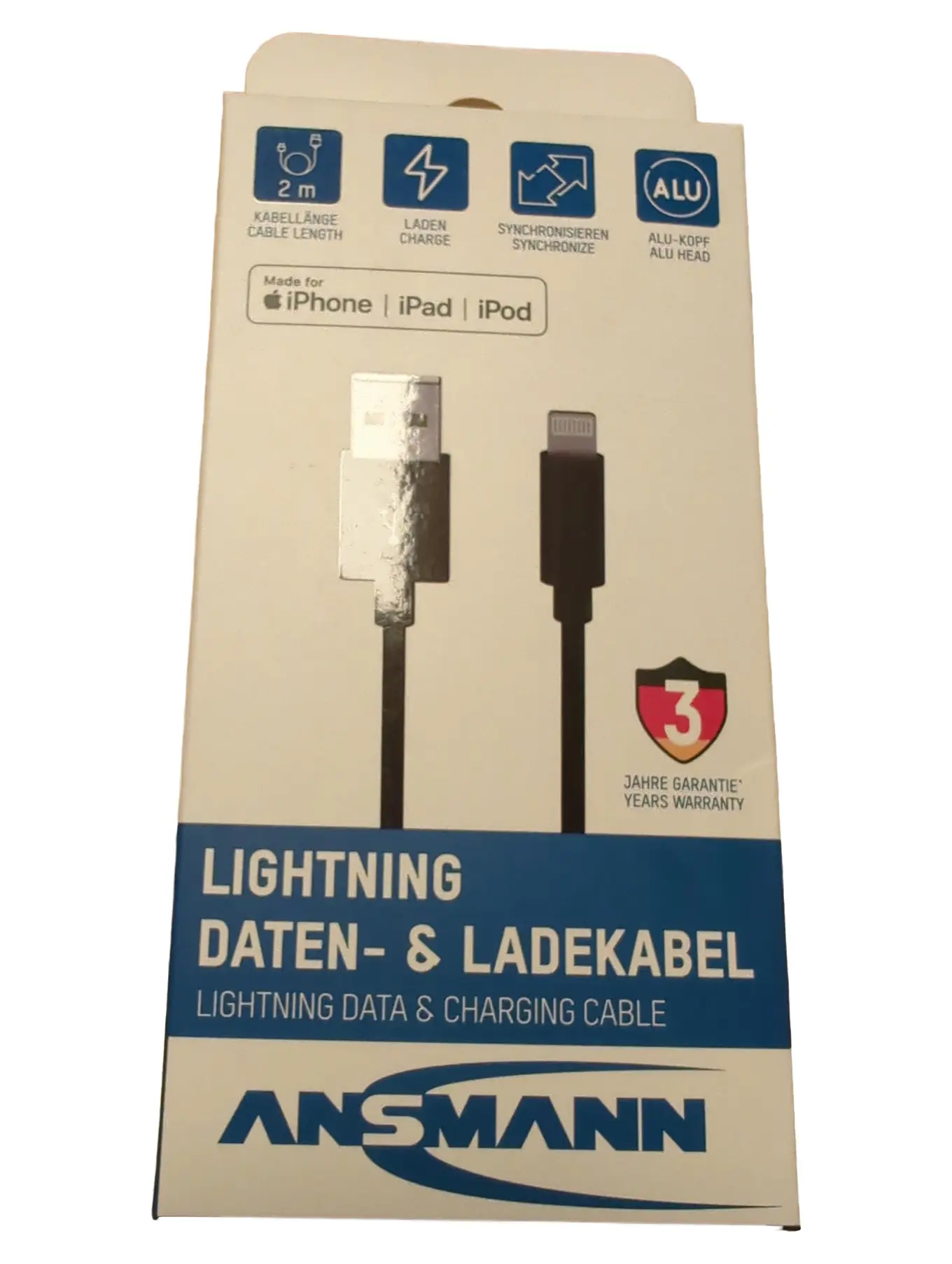 ANSMANN Lightning Daten- & Ladekabel 2m für iPhone iPad iPod Schwarz