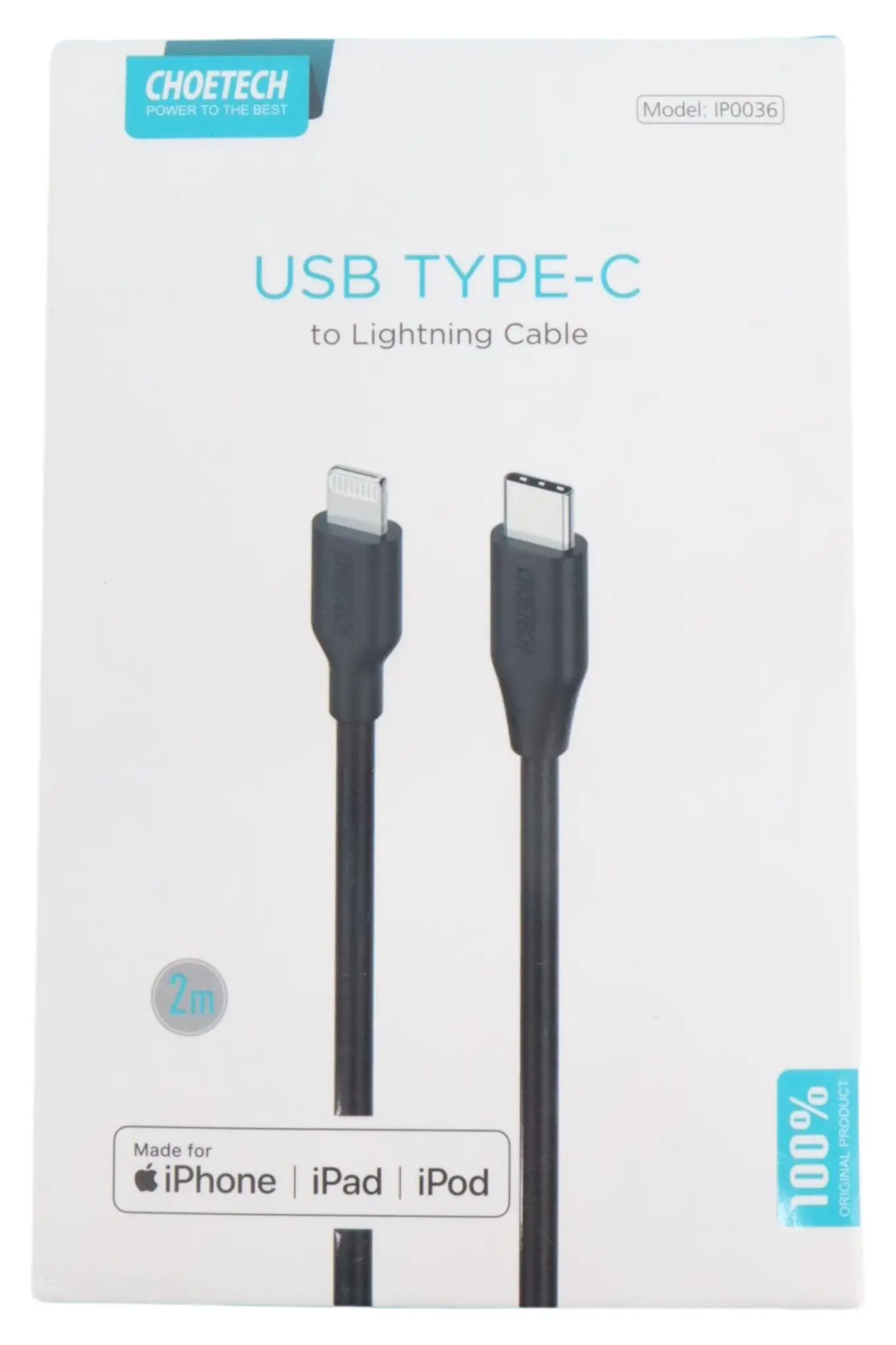 CHOETECH Handy Ladekabel USB C auf Lightning Kabel 2m Grau iPhone iPad iPod