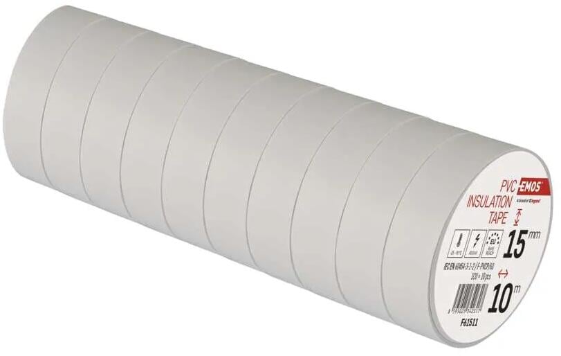 EMOS F61511 Isolierband, Breite 15mm, Länge 10m, PVC, weiß (2001151010)