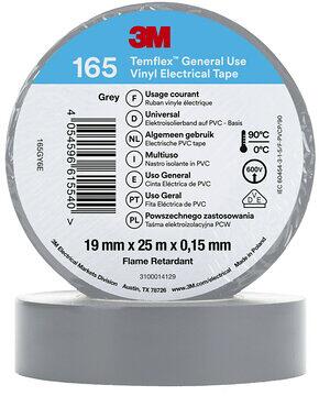 3M 165GY6E Temflex Vinyl-Isolierband 165, 19 mm x 25 m, grau (7100184814)