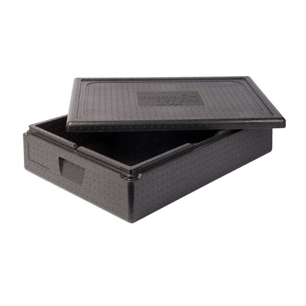 Thermo Future Box, GN 1/1 Premium, Isolierbox schwarz mit Deckel, 117 mm tief, 21 Liter, robust, nachhaltig aus EPP