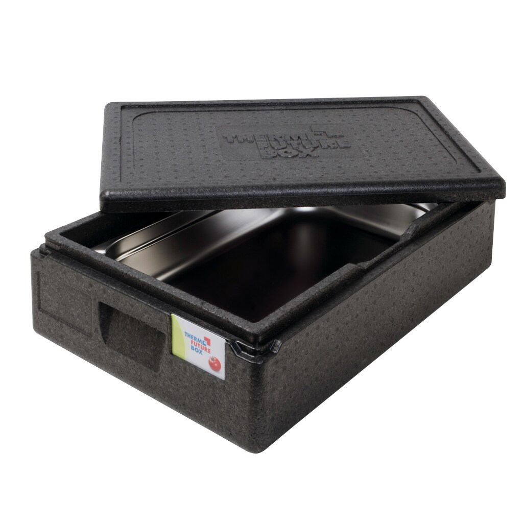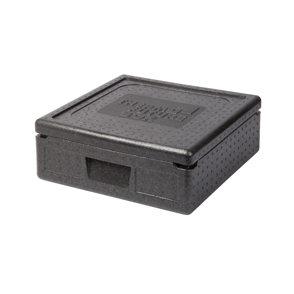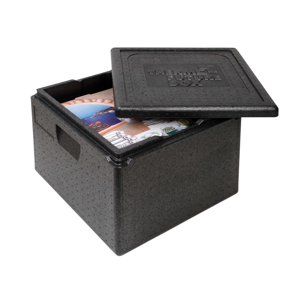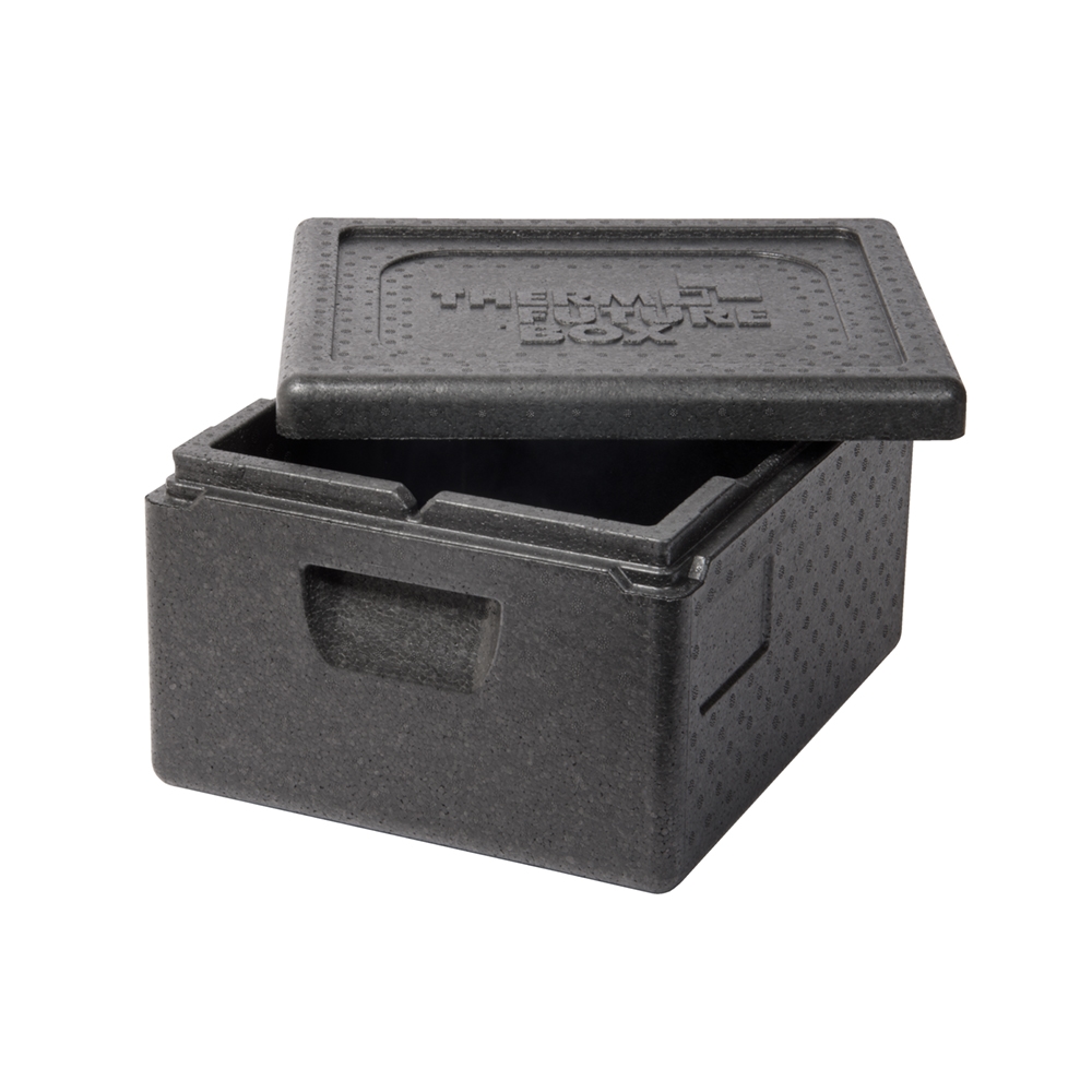 Thermo Future Box, GN 1/2 Premium, Isolierbox schwarz mit Deckel, 167 mm tief, 15 Liter, robust, nachhaltig aus EPP