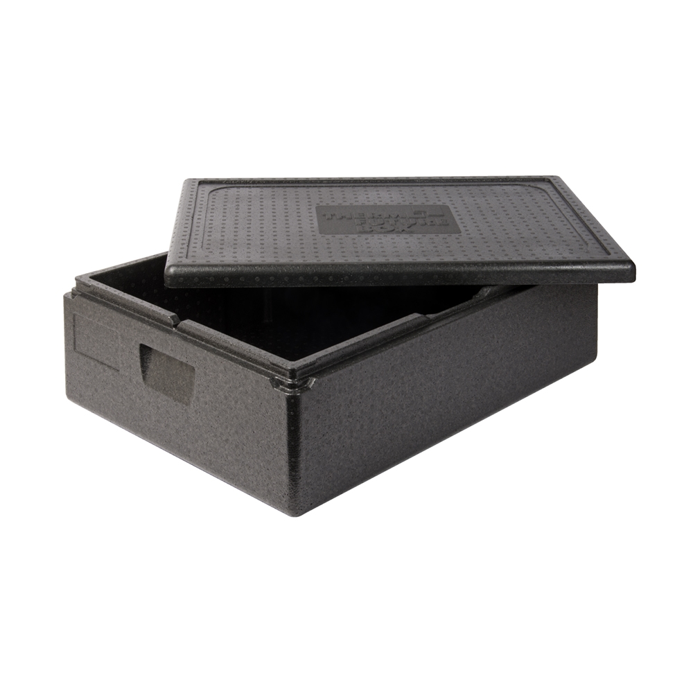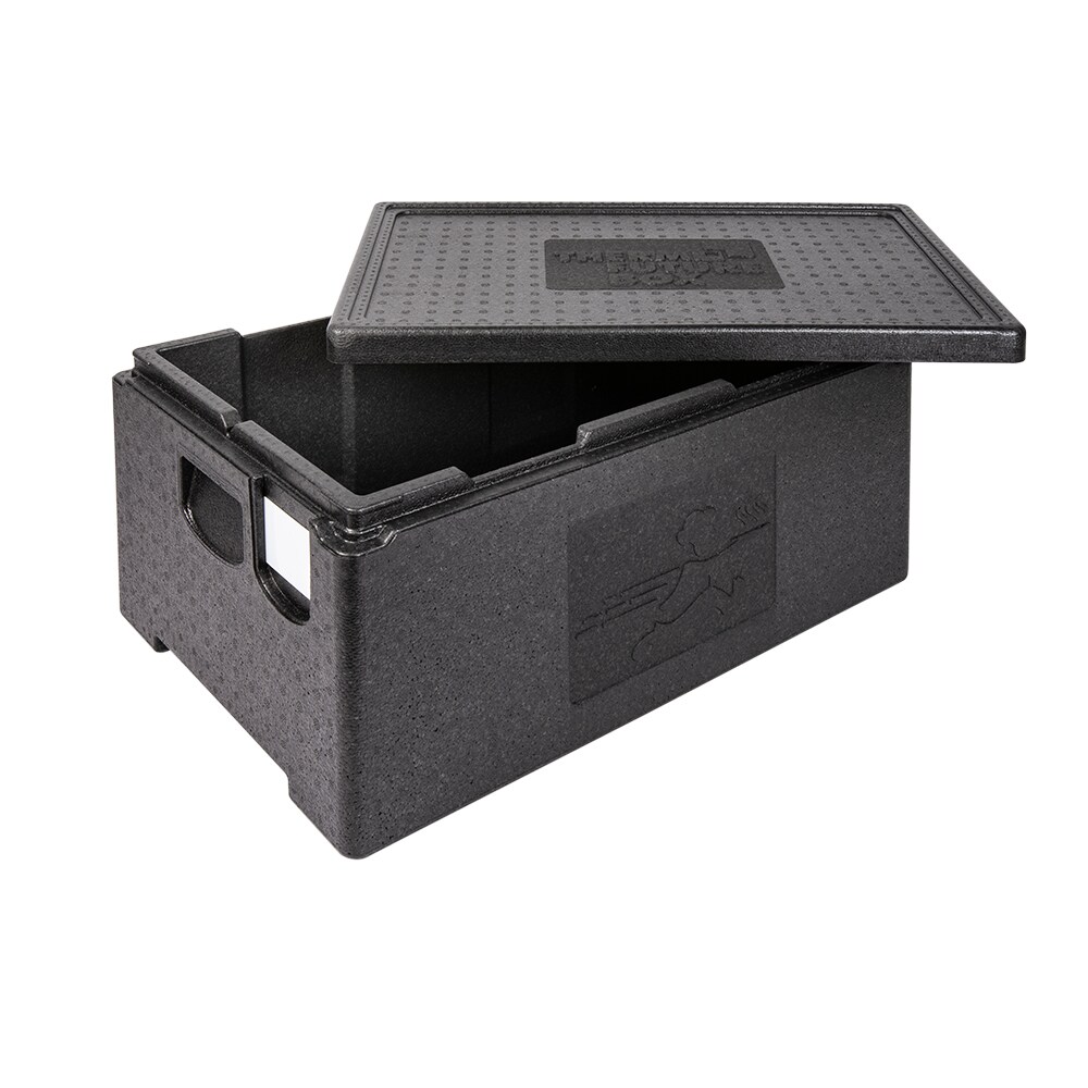Thermo Future Box, Shoppingbox GN 1/2, Isolierbox schwarz mit Deckel und Henkel, 330 mm tief, 33 Liter, robust, nachhaltig aus EPP
