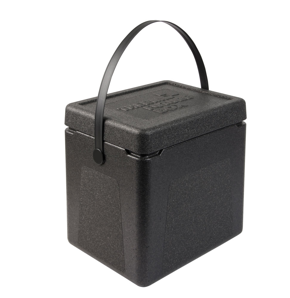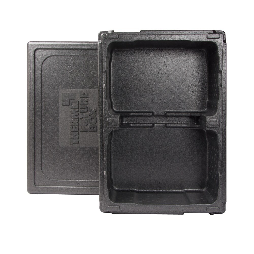 Thermo Future Box, Stapelbox 1/2 Euronorm, Isolierbox schwarz mit Deckel, 170 mm tief, 13 Liter, robust, nachhaltig aus EPP