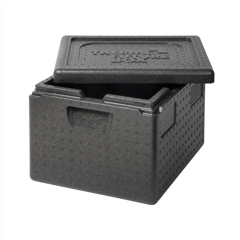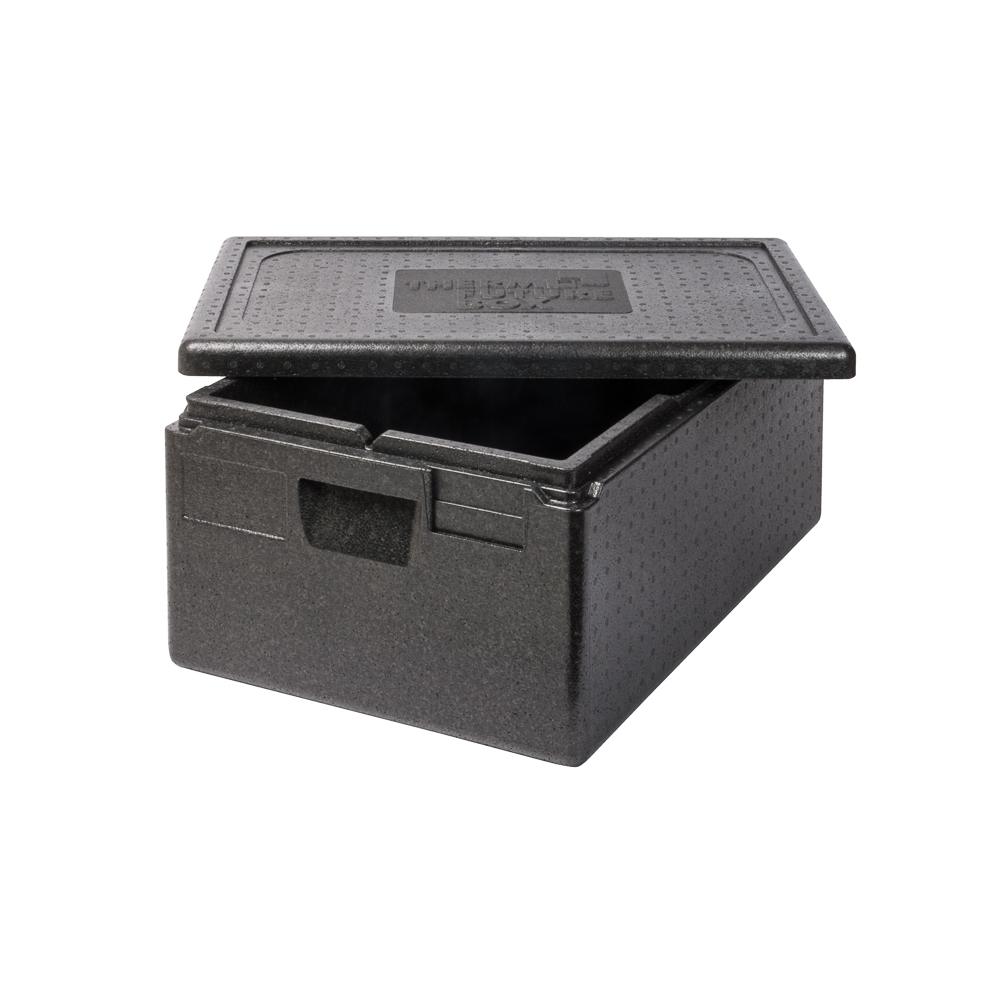 Thermo Future Box, GN 1/2 Premium, Isolierbox schwarz mit Deckel, 217 mm tief, 19 Liter, robust, nachhaltig aus EPP