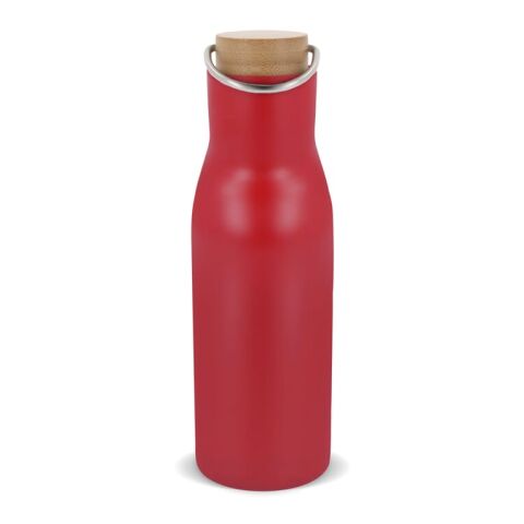 Werbeartikel 500 ml Isolierflasche aus Edelstahl vakuumisoliert mit echtem Bambusdeckel & Matt-Finish – dunkelrot – mit Logo bedruckt