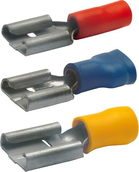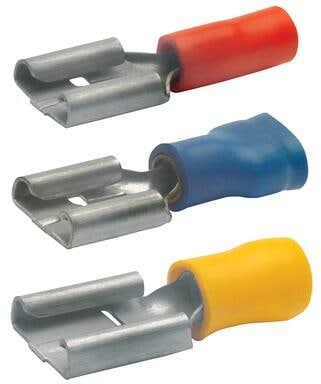 Flachsteckhülsen DIN 46245, Steckgröße 6,3 x 0,8mm isoliert, mit Isolationscrimp Querschnitt 1,5mm² - 2,5mm² blau,