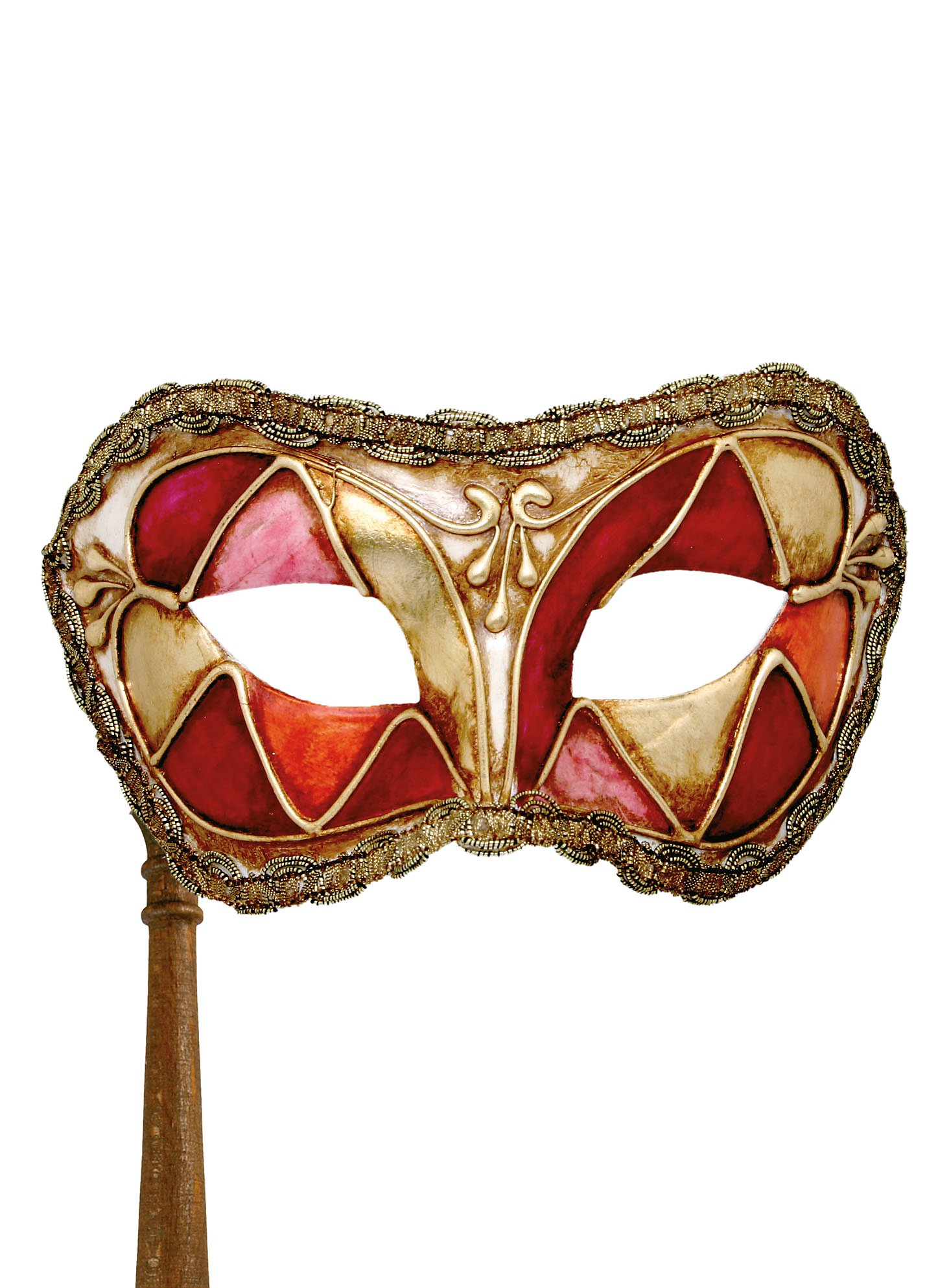 Colombina arlecchino rosso con bastone - Venezianische Maske