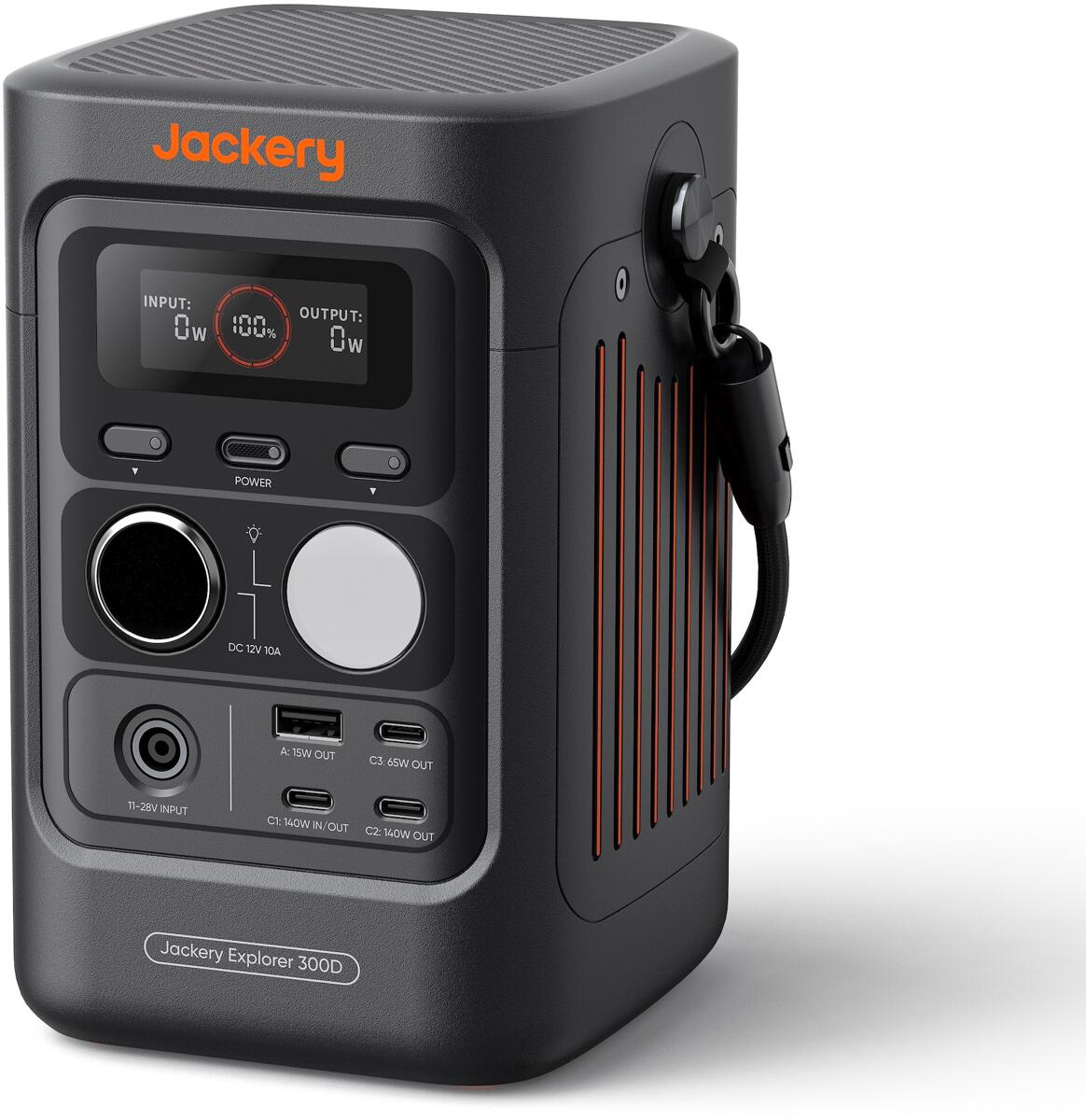 Jackery E300D tragbare Powerstation mit 1x USB-C (140W), 1x USB-C (65W), 1x USB-A, 1x Autosteckdose DC12V/10A, 288Wh