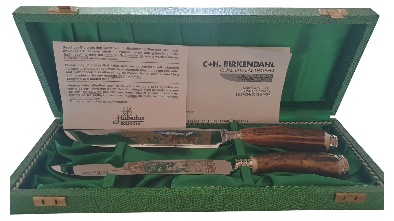 HUBERTUS Tranchier Besteck Set Hirschhorn Edelstahl Jagdmesser