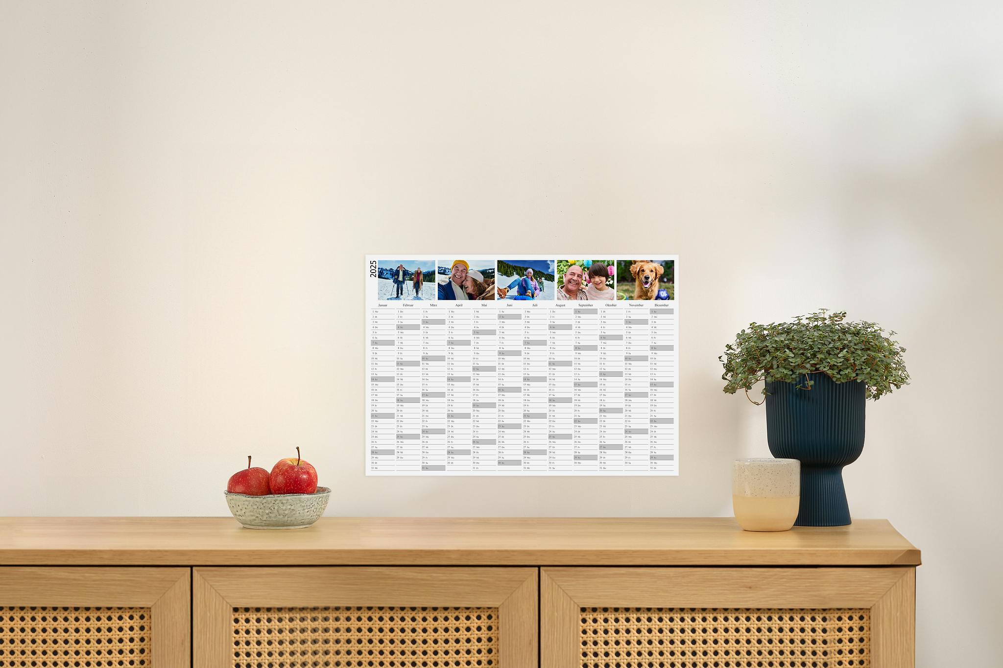 Jahresplaner 2025 selbst gestalten mit Foto 42 x 60 cm in keks Jahreskalender Design: Happy Plan. kartenmacherei