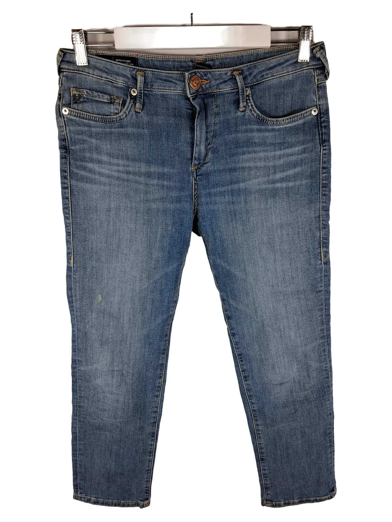 TRUE RELIGION Cora Damen Jeans Straight Leg Mid Rise W29 Blau Denim