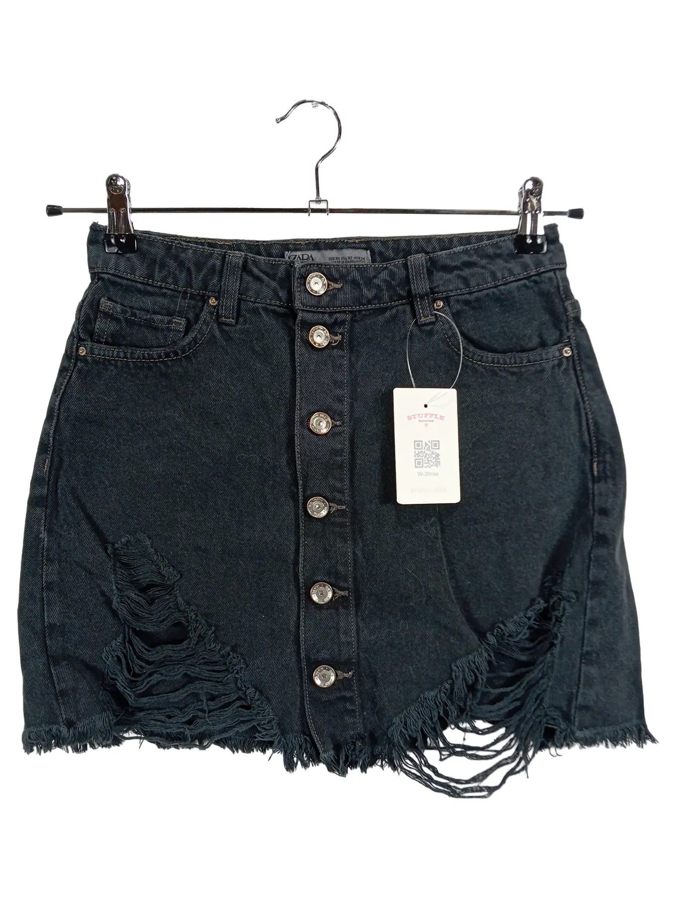 ZARA Damen Jeansrock Schwarz XS Destroyed-Effekt Minirock Casual