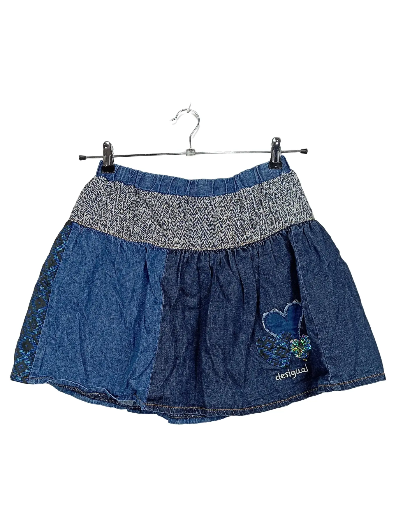DESIGUAL Jeansrock Mädchen Gr. 158/164 Patchwork Herz Applikation Blau