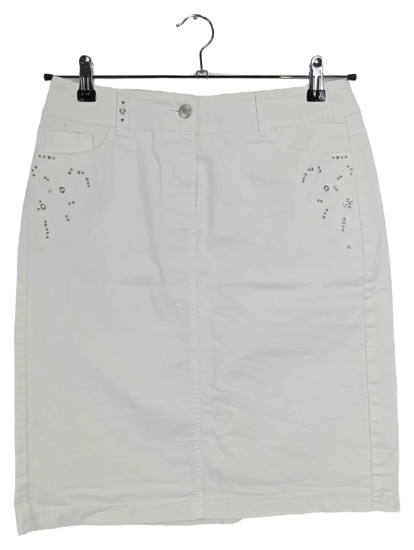 GERRY WEBER Damen Jeansrock Gr. 40 Weiß Casual Midi Nieten Stickerei