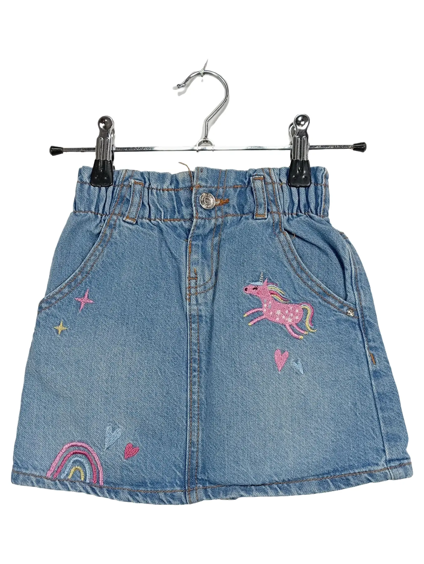 DENIM CO. Mädchen Jeansrock Gr. 116 Einhorn Regenbogen Stickerei Blau
