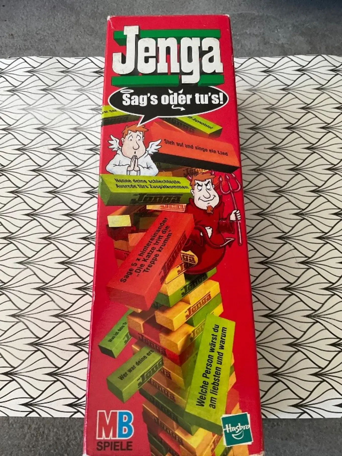 HASBRO Jenga Sag's oder tu's Stapelspiel Holz Engel Teufel Mehrfarbig ab 8 Jahre