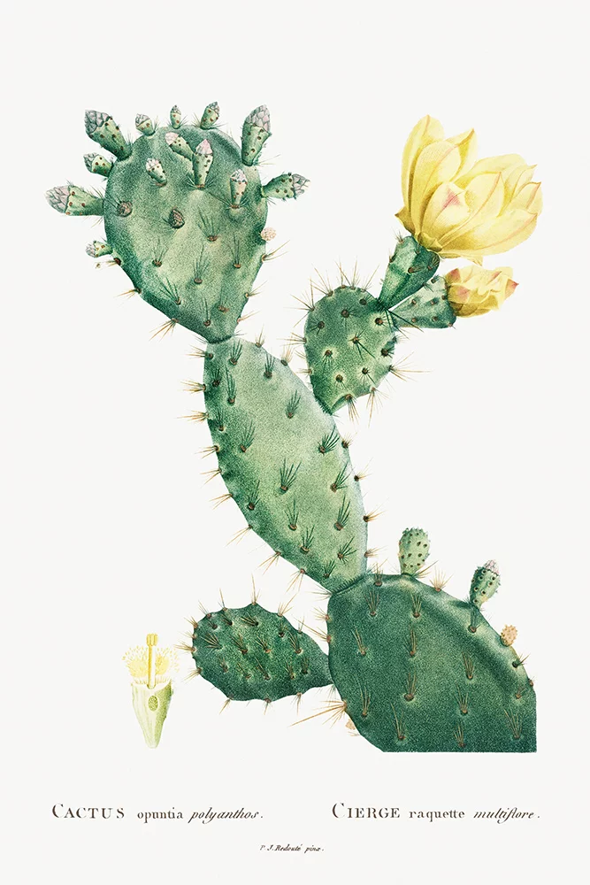 Artfilia Pierre Joseph Redouté - Vintage Cactus Illustration (Aloe Opuntia Polyanthos) Variante 1 60x90 cm
