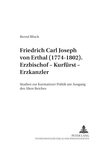 Friedrich Carl Joseph von Erthal (1774-1802). Erzbischof – Kurfürst – Erzkanzler, Taschenbuch von Bernd Blisch, Peter Lang GmbH, Internationaler
