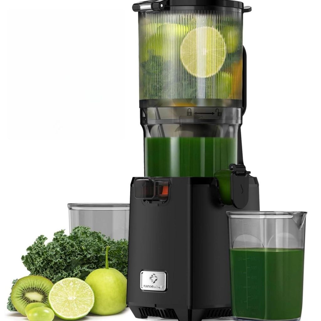 KitchenBrothers Slow Juicer - Entsafter - Obst- und Gemüsepresse - 43mm und 60mm Einfüllöffnung - 400ml - Schwarz