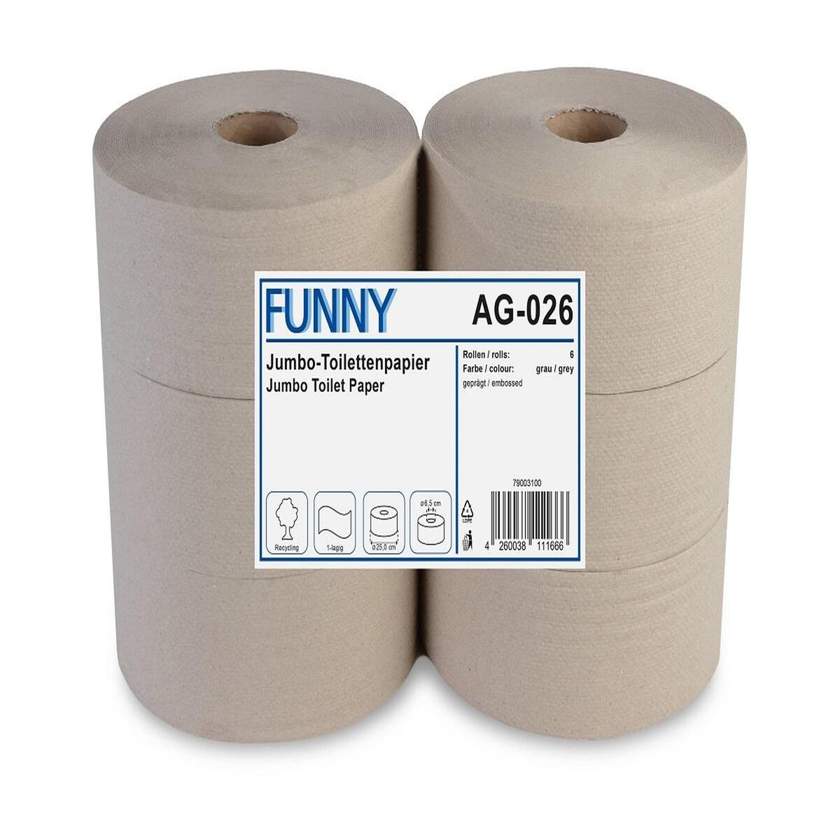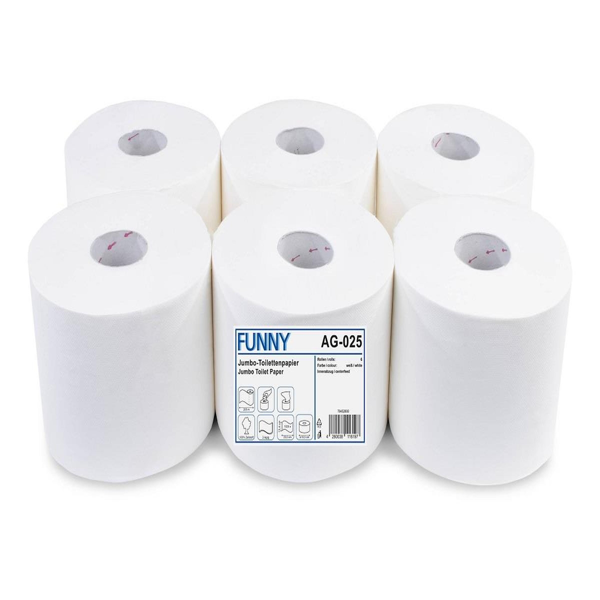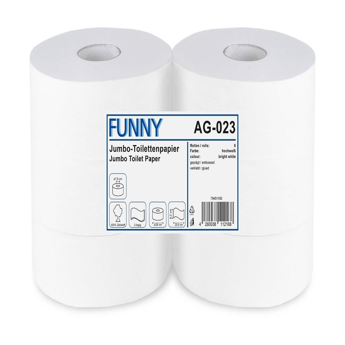Funny Jumbo Toilettenpapier 6 Rollen, 2-lagig, geprägt, Zellstoff, hochweiß, Ø25cm, Kern 7,6 cm