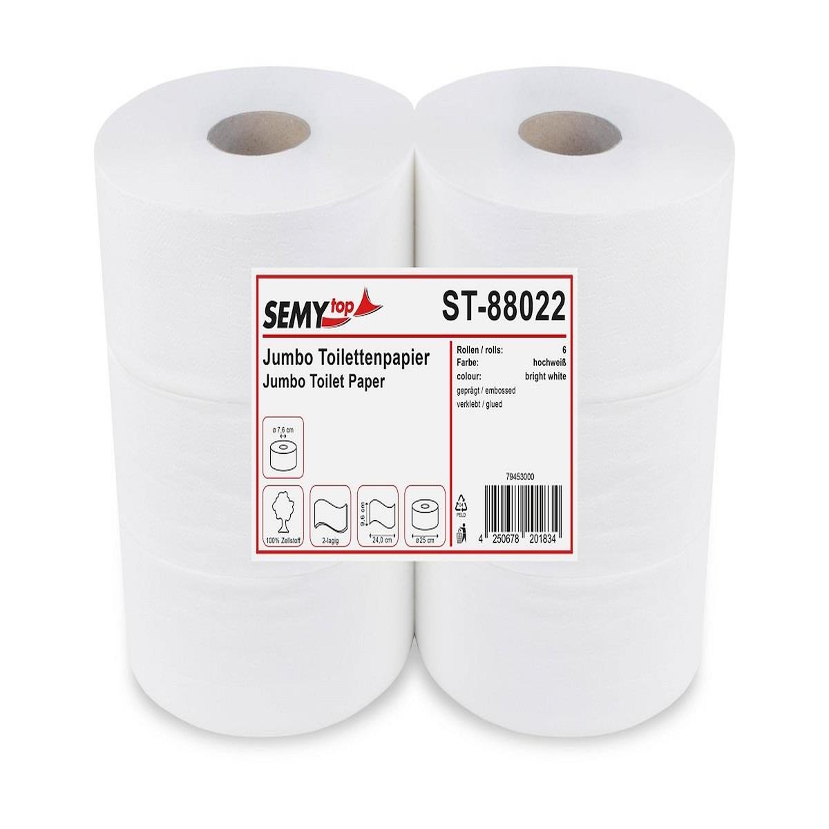 SemyTop Jumbo Toilettenpapier, 2-lagig, 6 Rollen