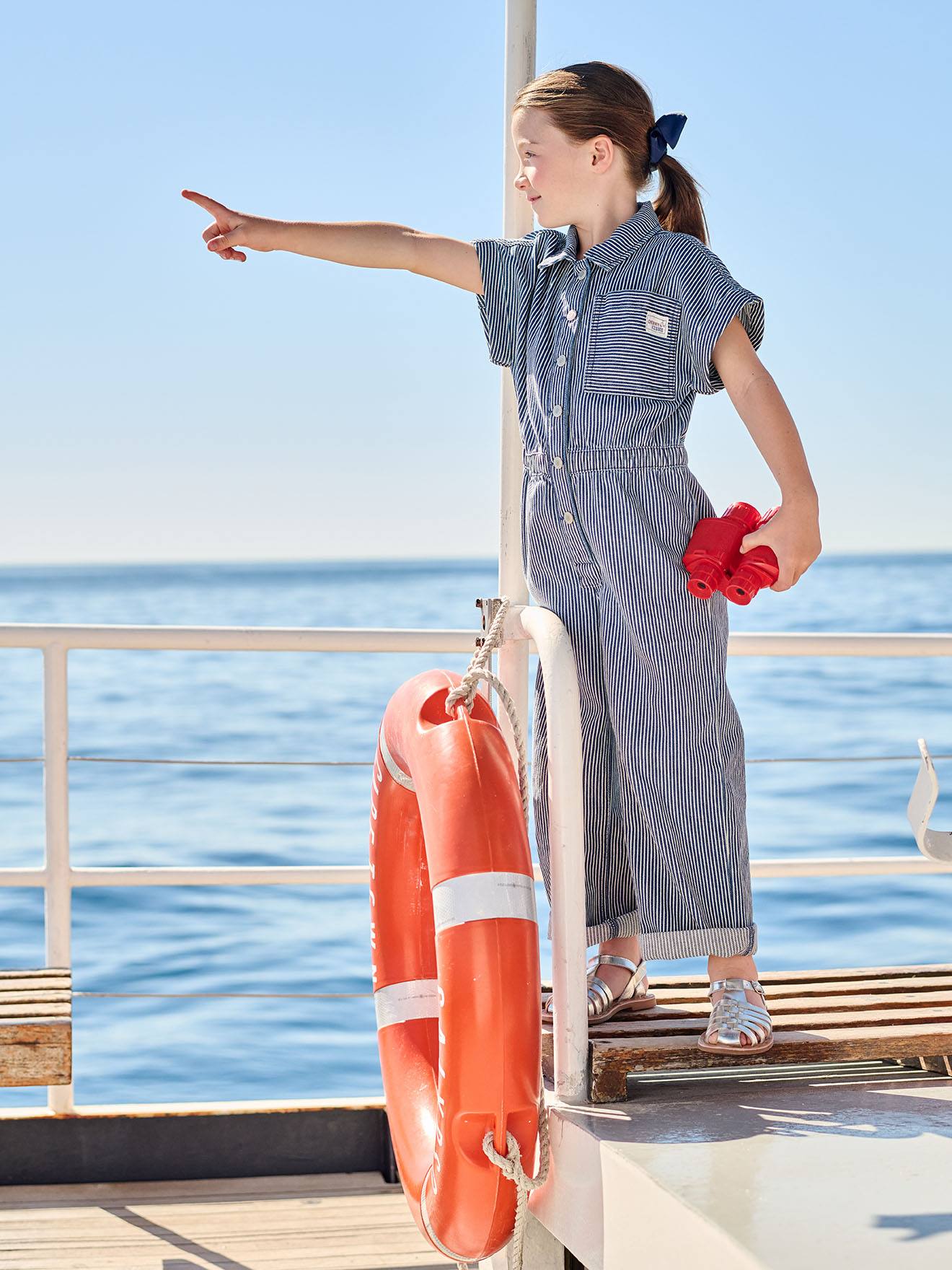 Gestreifter Jumpsuit mit Hemdkragen, Mädchen blau Gr. 128 von vertbaudet